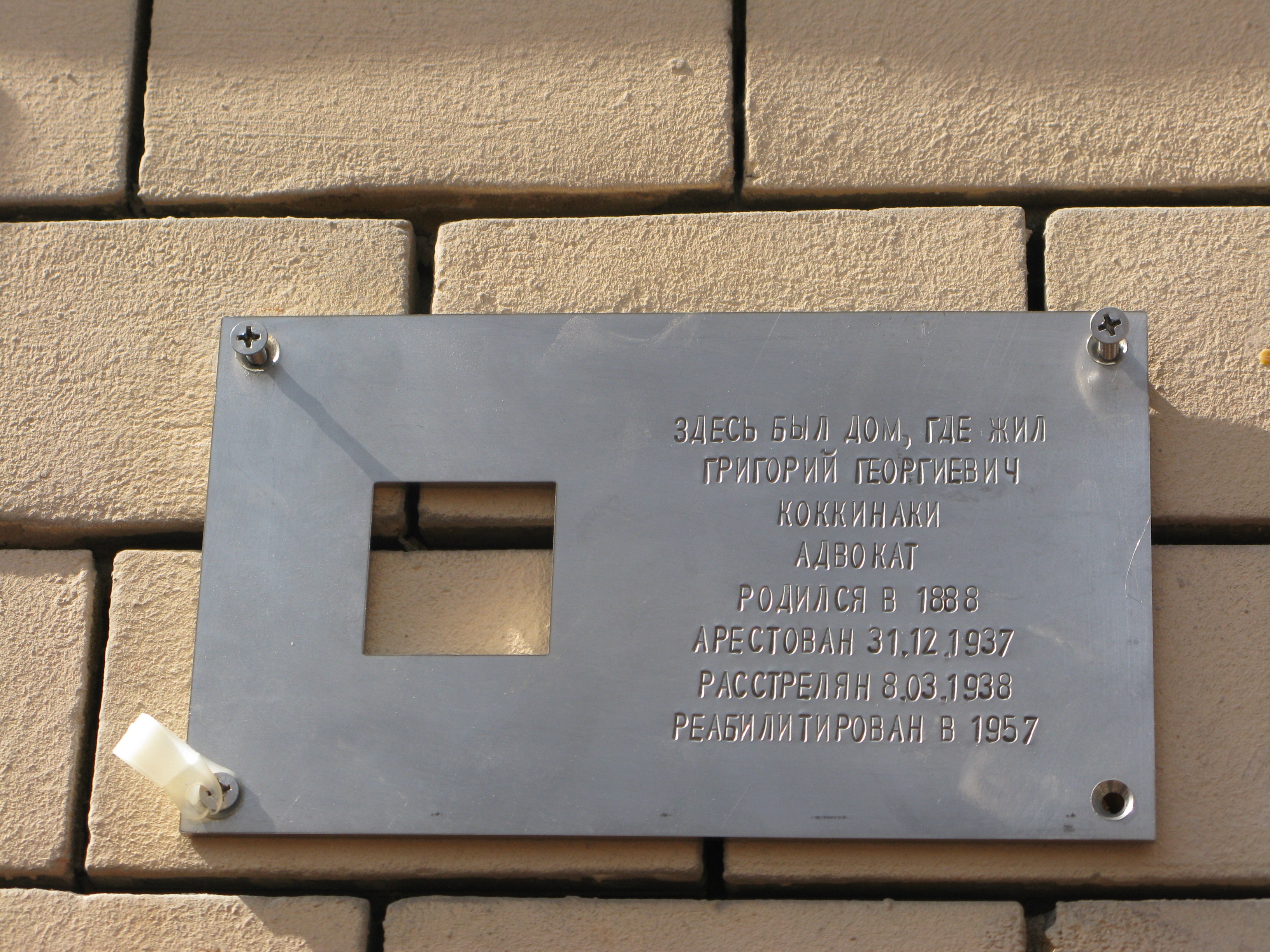 В бывшем лагере Мальдяк на Колыме установлена памятная табличка в память об умерших греках в этом лагере. На доме 29 по Гоголевскому бульвару в Москве совместно с исполнителями проекта «Последний адрес» установлена мемориальная табличка в память о расстрелянном адвокате Григории Коккинаки.