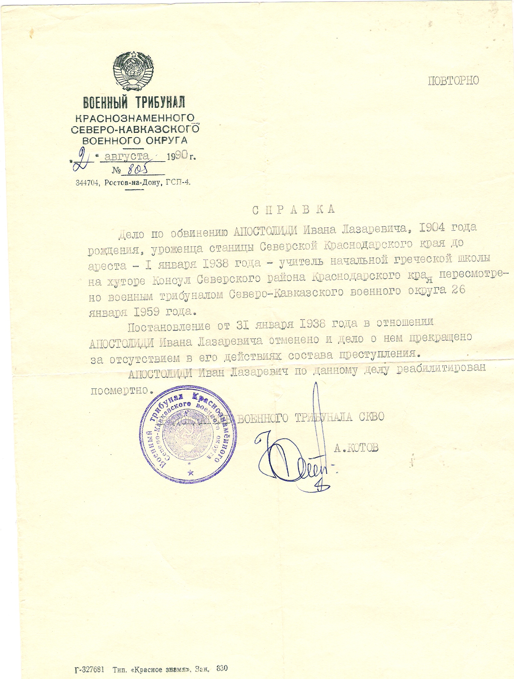 жена-Апостолиди Екатерина Ильинична,Сын-Апостолиди Лазарь Иванович |